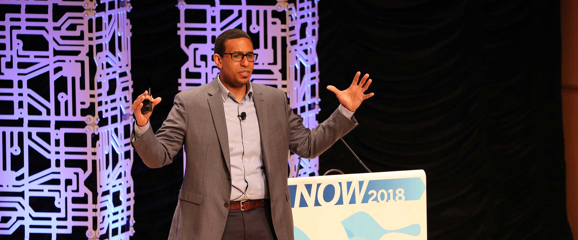 In a first for NOW, the multitalented Ashley Llorens kicked off the 2018 conference with a killer hip-hop performance that had the crowd putting their hands in the air. While we all would have enjoyed a longer set from Llorens (who performs around the world as SoulStice), he soon moved his presentation to his “other” area of expertise: He leads the Intelligent Systems Center at the Johns Hopkins University Applied Physics Lab, where he spearheads research and development activities in machine learning, robotic and autonomous systems, and applied neuroscience.