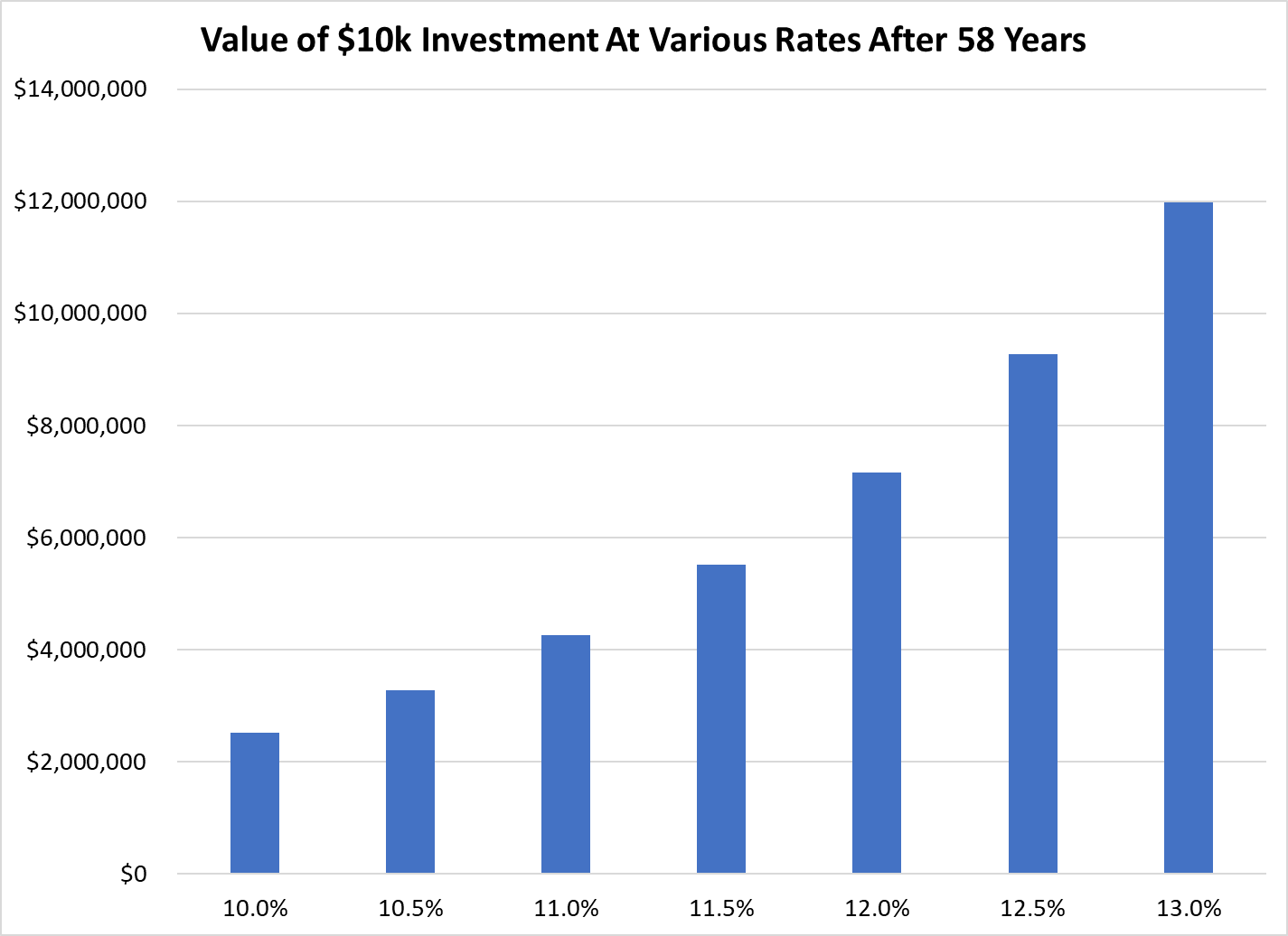 Small Differences In the Compounding Rate Over Long Periods of Time = Huge Differences In Value