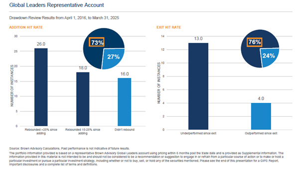 Source: Brown Advisory research. Portfolio information is based on a Global Leaders representative account, as of 06/12/2025. The use of names and logos of these entities should not be construed as an endorsement by these entities. Please see the end for important disclosures.