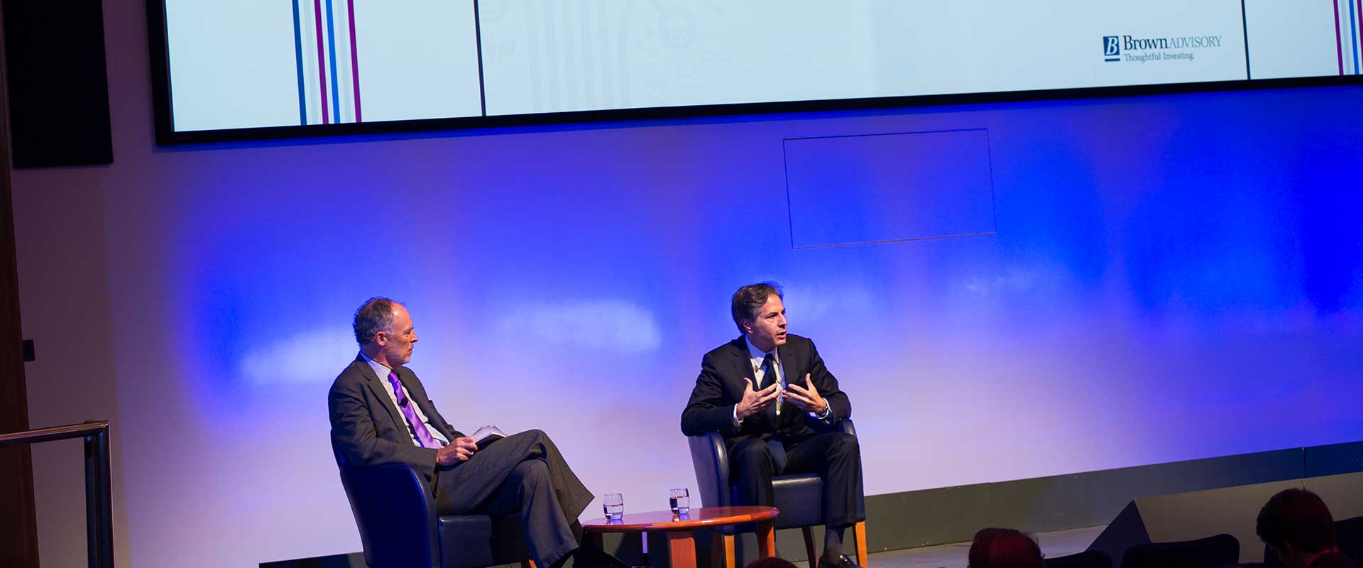 Antony Blinken, Former United States Deputy Secretary of State at Brown Advisory's NOW Conference with Peter Mallinson, Vice Chairman, Brown Advisory LimitedWith recent terrorist events in the U.K., Blinken’s comments about curbing the influence of ISIS were especially relevant. The good news, he said, is that the U.S. and its allies will shortly take away ISIS’ self-declared caliphate in Mosul, Iraq, and that should render impotent one of the organisation’s primary narratives—that it is building a physical state. The bad news: Given how difficult it has become to travel to Iraq and Syria, ISIS is now telling followers around the world to “stay at home, attack at home.” To combat this more dispersed threat, intelligence and information sharing among countries is now even more essential. The U.S. has worked very hard to convince countries around the world to connect to Interpol so that information can quickly be used to monitor and detain individuals that have become radicalised.
